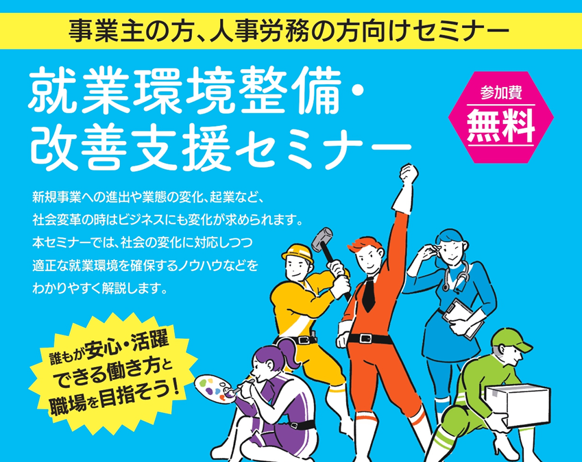 本セミナーでは、働きやすい職場づくりや労働条件の自主点検、過重労働の防止など、企業の就業環境改善に役立つ情報をお届けします。私自身の経験や事例を交えながら、現場で実践できるヒントを共有いたします。
